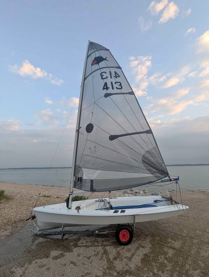 Selling my Solution dinghy as I don't use it as much as I should, windsurfing has taken over! Lovely boat to sail and a great class! Re-roped with Rooster all spec pro for the continuous control lines, new shrouds 2025, new Rooster rudder bag 2024, new Rooster Polilite main sheet 2024. Selling with boat cover, launching trolley and two sails (the full rig and the flat cut sail). One small ding on the bow which has been repaired the hull is water tight. No road trailer. Collection only.
