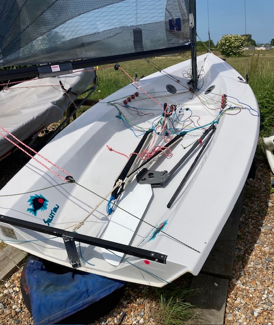 Selling my Solution dinghy as I don't use it as much as I should, windsurfing has taken over! Lovely boat to sail and a great class! Re-roped with Rooster all spec pro for the continuous control lines, new shrouds 2025, new Rooster rudder bag 2024, new Rooster Polilite main sheet 2024. Selling with boat cover, launching trolley and two sails (the full rig and the flat cut sail). One small ding on the bow which has been repaired the hull is water tight. No road trailer. Collection only.